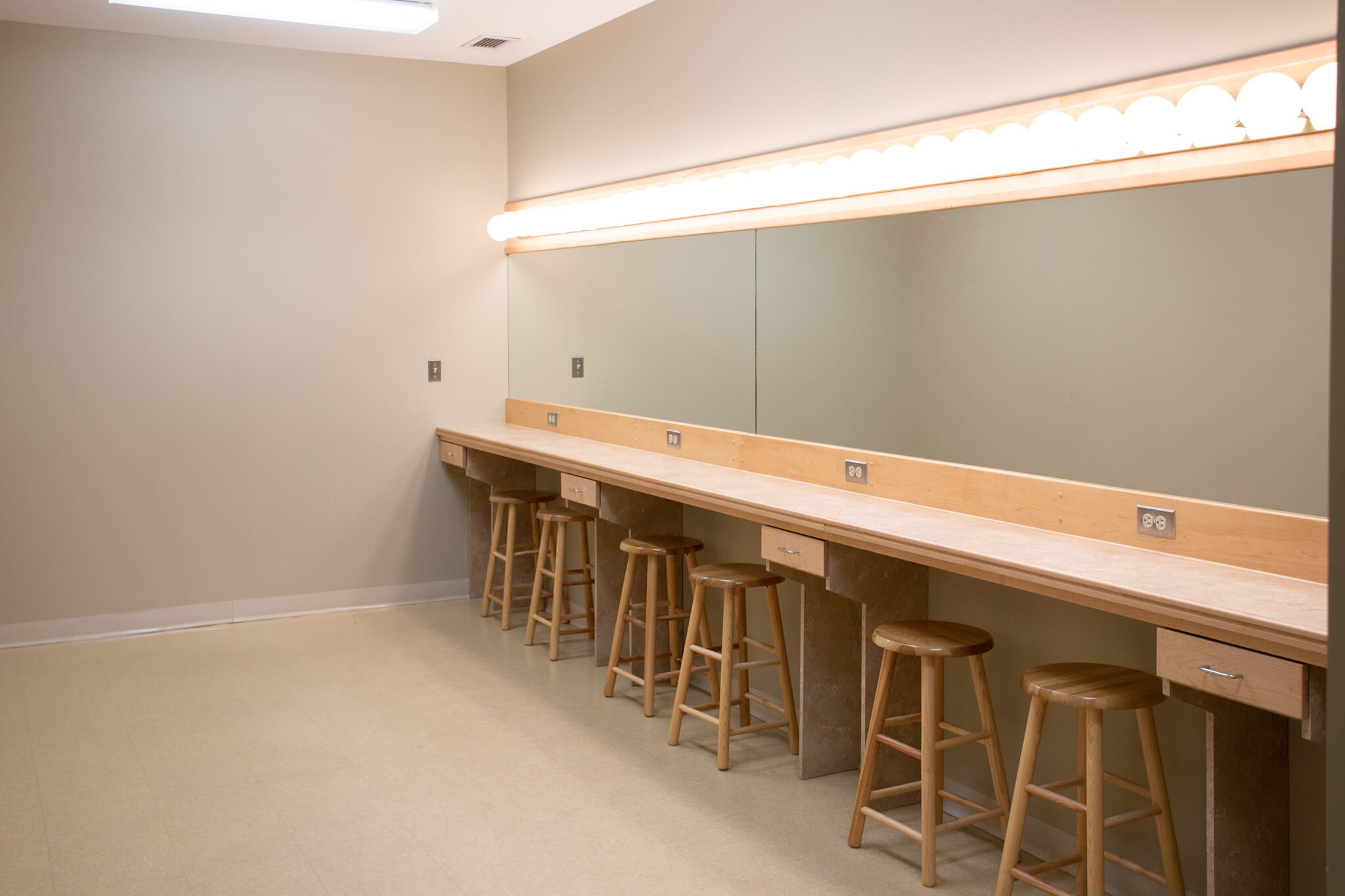 GREEN ROOM: N/A but one dressing room has mini fridge, kettle, iron, ironing board, steamer.